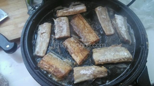 5.将带鱼逐个放入电饼铛煎,放入后不要乱动,待其自然煎好能滑动。