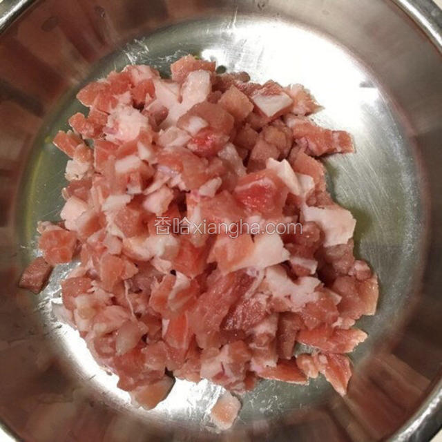 2.将肉洗净切丁备用