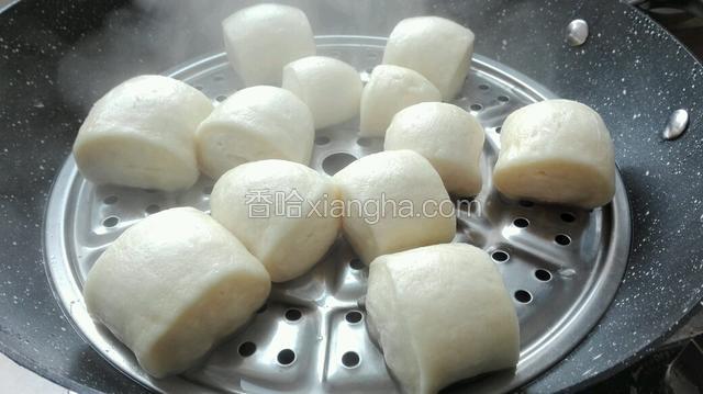 6.锅中倒入适量水,水烧开后,把馒头放于蒸格上。