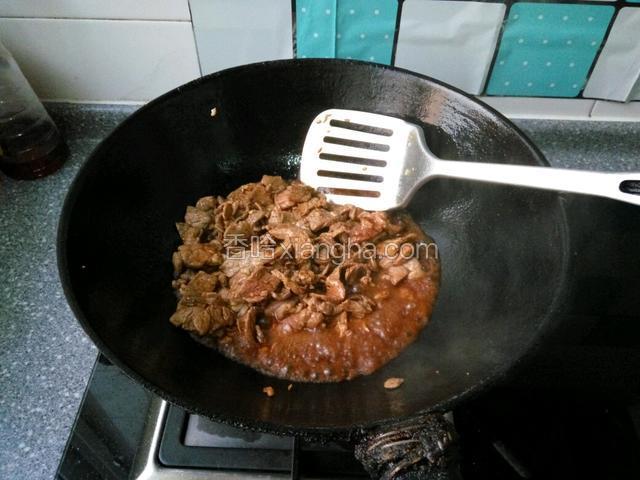2.热锅凉油煸香姜蒜末和羊肉煸炒段生