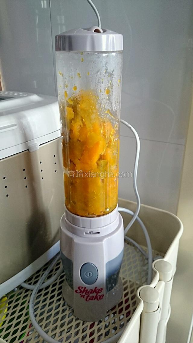 2.熟透的南瓜晾一下 搅拌机搅拌成泥状