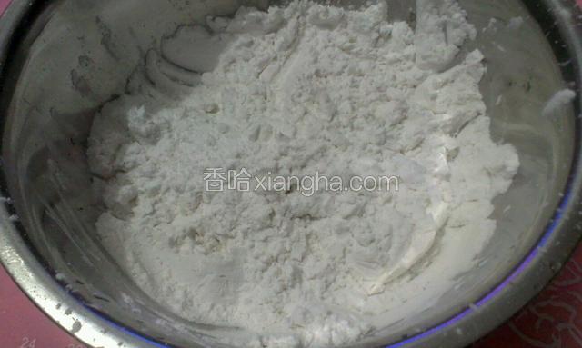 2.用刚刚烧开的沸水,边倒水边用筷子搅拌,直到扮成柳絮状,稍微凉一下,用手活成柔软的面团,切记要软一点