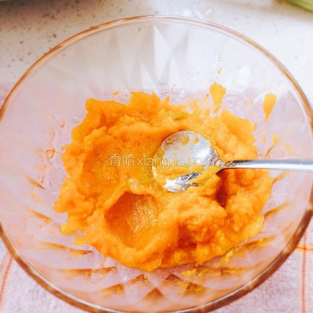2.蒸好稍晾一会,不烫手的时候用勺子压成泥