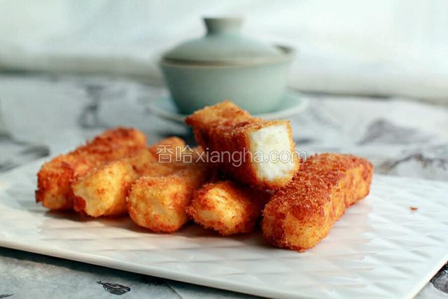 6.先裹一层低粉,再裹蛋液,最后再裹一层面包糠。