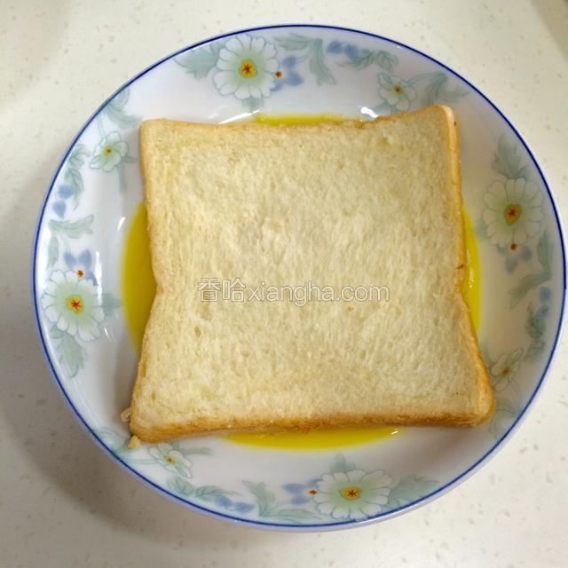 4.把沾有鸡蛋液的吐司放入平底锅内,用小火把两面都烘烤会。无需放油。
