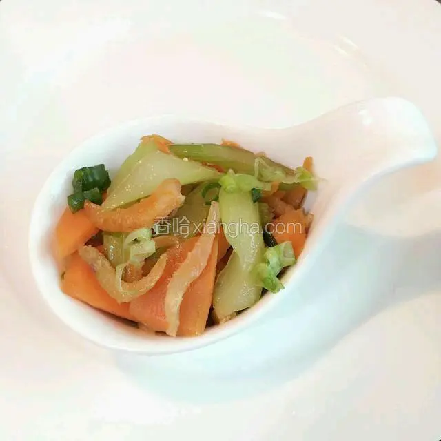 4.再加入西芹稍稍灼1至2分钟捞起沥干