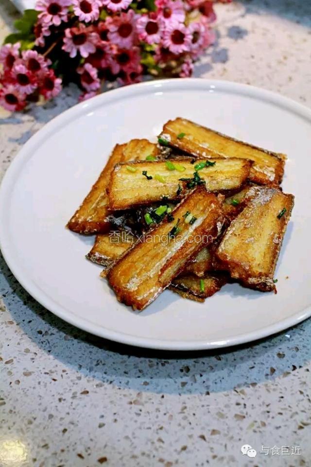 5.煎好所有的鱼,关火,在剩下的油里撒一把葱花,捞出撒在鱼肉上点缀即可。