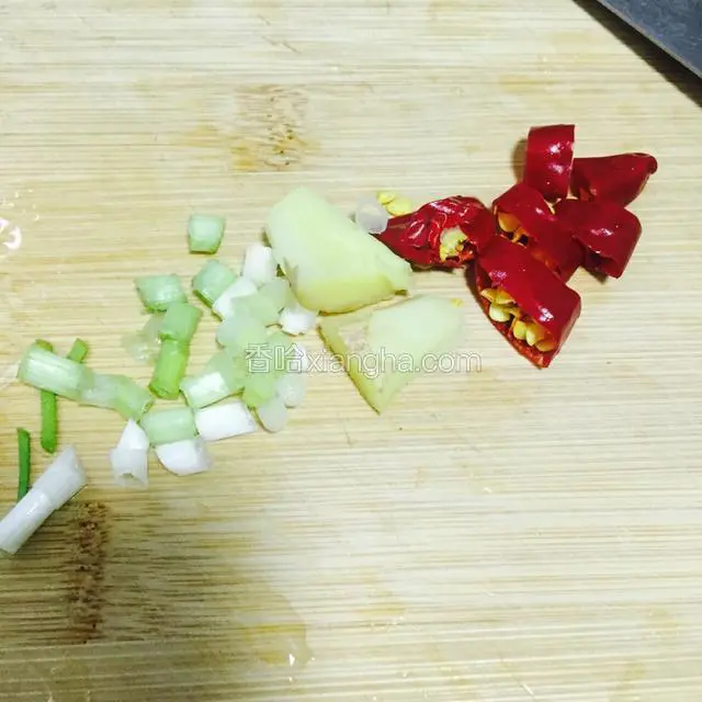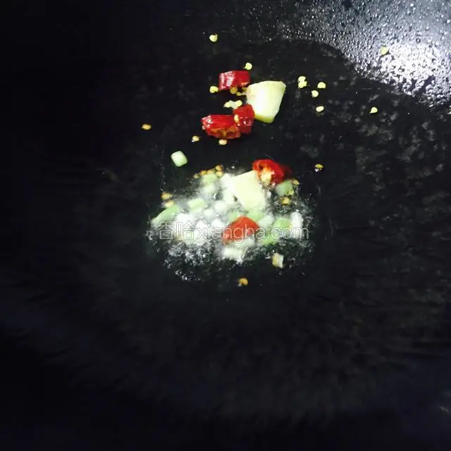 3.锅中倒入适量油放入葱姜红干椒爆香