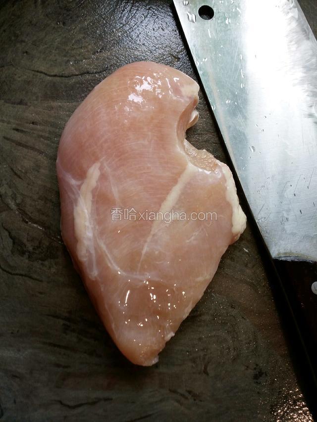 1.鸡胸脯肉洗干净。