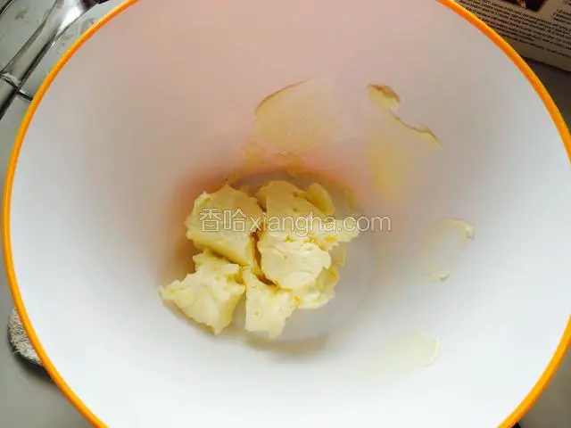 2.把炼奶倒入,用打蛋器搅拌均匀