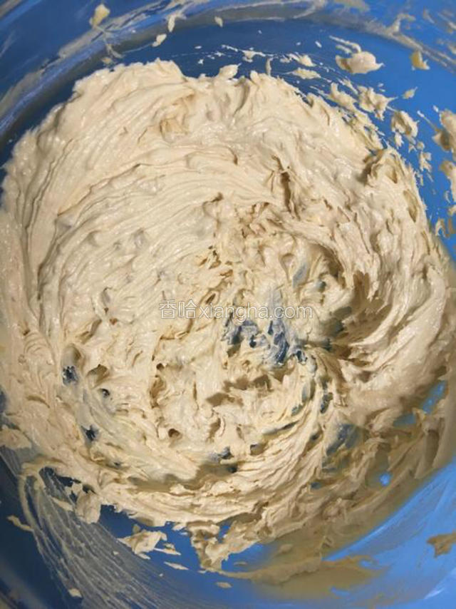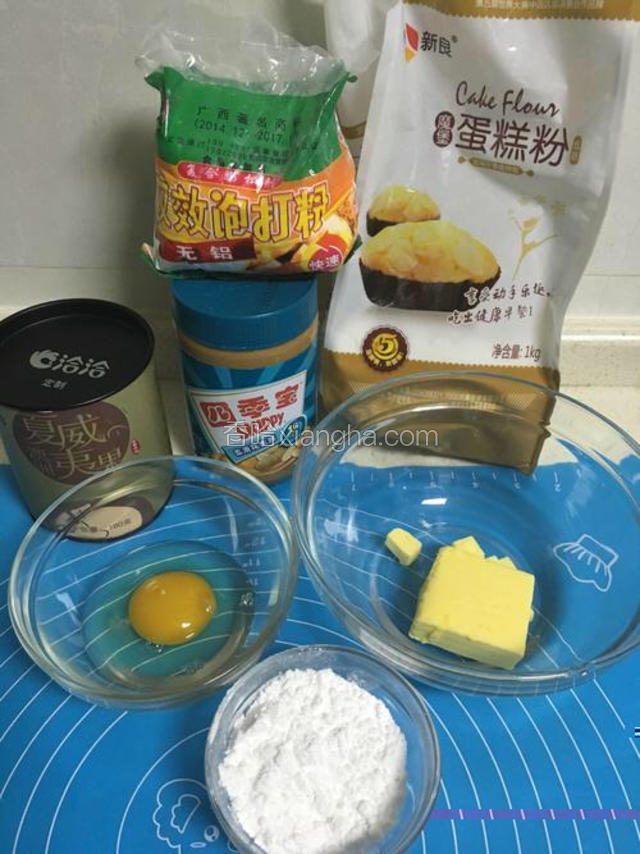 3.软化的黄油、花生酱、糖粉用搅拌器中低速搅打