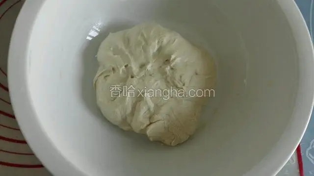 6.面粉用温水和软一点不粘手,盖上保鲜膜松弛一小时