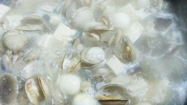 1.准备好蛤蜊,蘑菇,豆腐,鹌鹑蛋