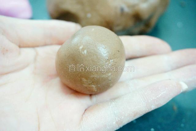 5.如图 把糯米团分成三份 最小份的放粉红色素 最大份放可可粉
