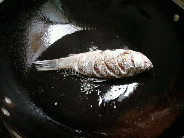3.放入腌制好的鱼煎至六七成熟,翻面继续煎,直到两面都煎好。