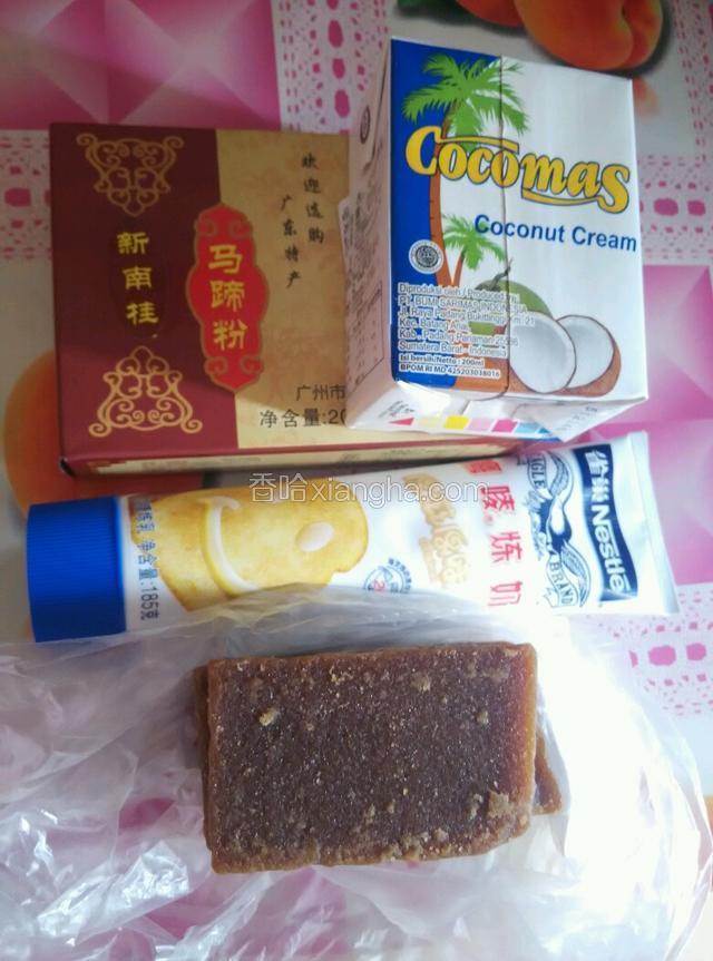 4.把一份马蹄粉加入200克的椰浆和100克的炼奶再加200ml的水搅拌均匀。另一份马蹄粉倒入煮好的红糖水搅拌均匀就可以了
