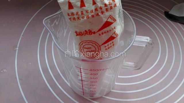 6.装入裱花袋用(六齿裱花嘴)放入冰箱备用