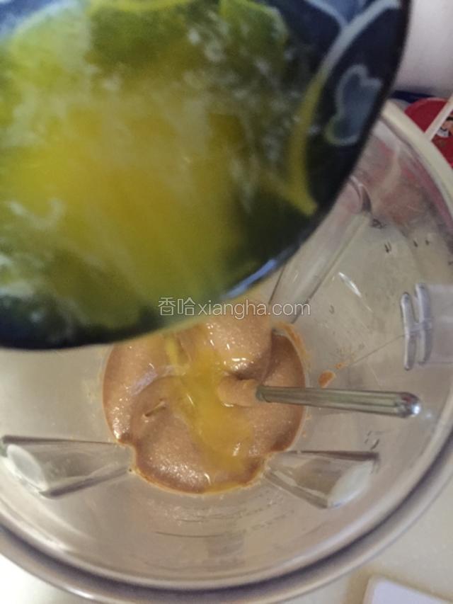 4.黄油隔水融化,和橄榄油分次少量添加到花生酱里。