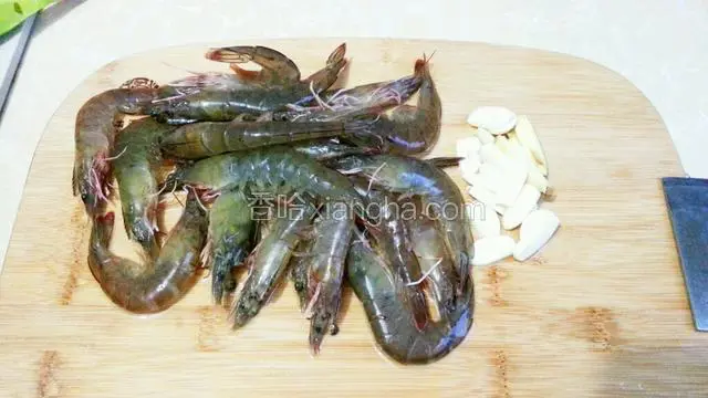 2.基围虾去掉头部的黑色一小块,因为它苦,姜蒜切片