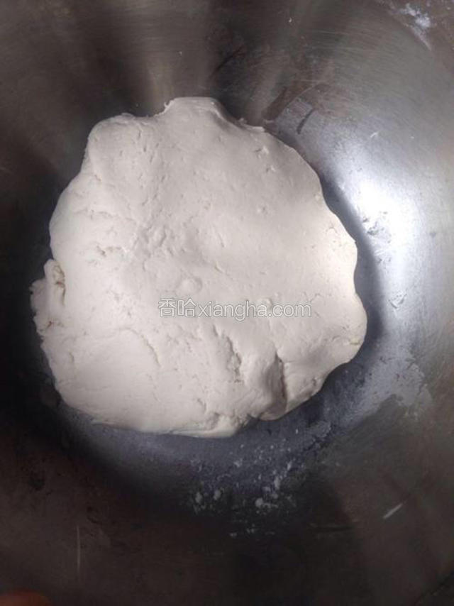 2.分次加入温水和一勺油和成较软的面团,盖上保鲜膜松弛约15分钟。