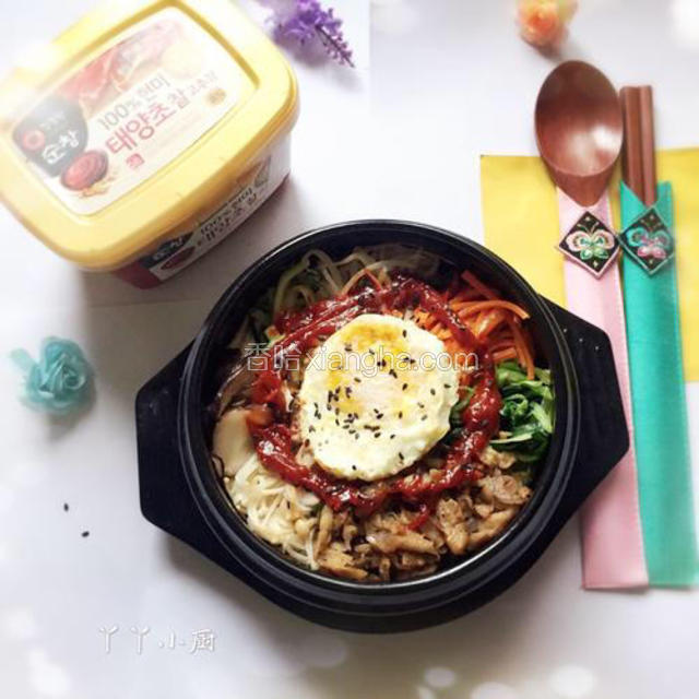 6.把米饭放入石锅,压紧实。