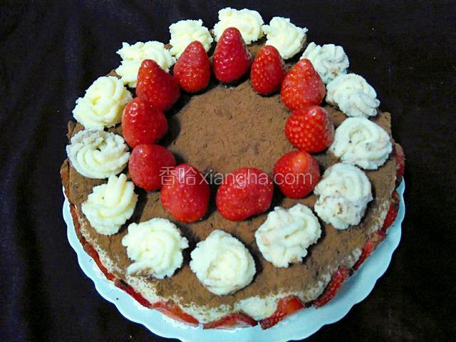 33.取适量的可可粉,以过筛的方式铺满蛋糕的表面。