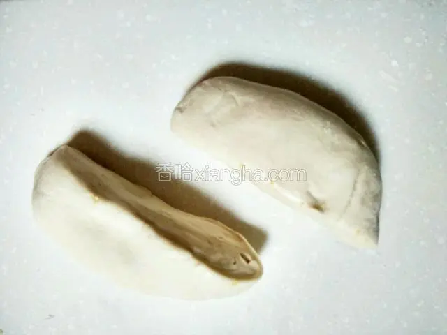 5.面团分二半,搓成长条,切成大小一样的剂子