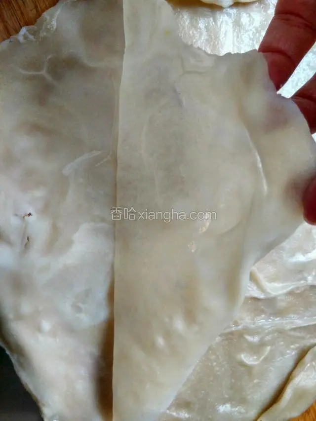 6.搓条切好的剂子按扁。取二个或三个刷油叠在一起擀薄。