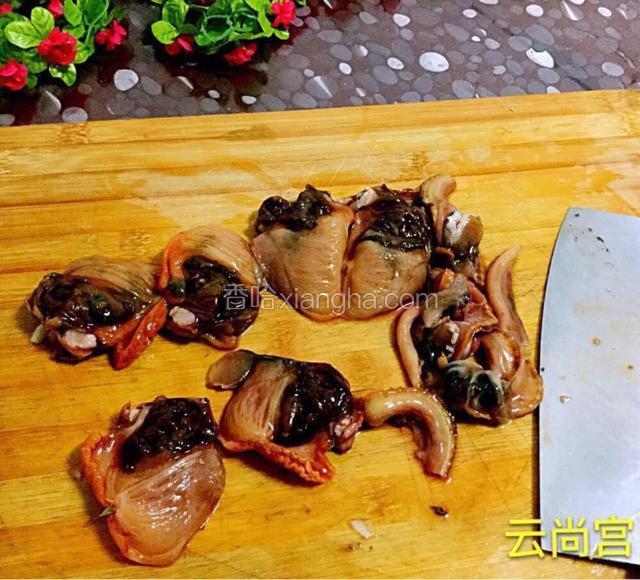 5.生赤贝肚子切开,把肠子和边上的绒毛去掉。