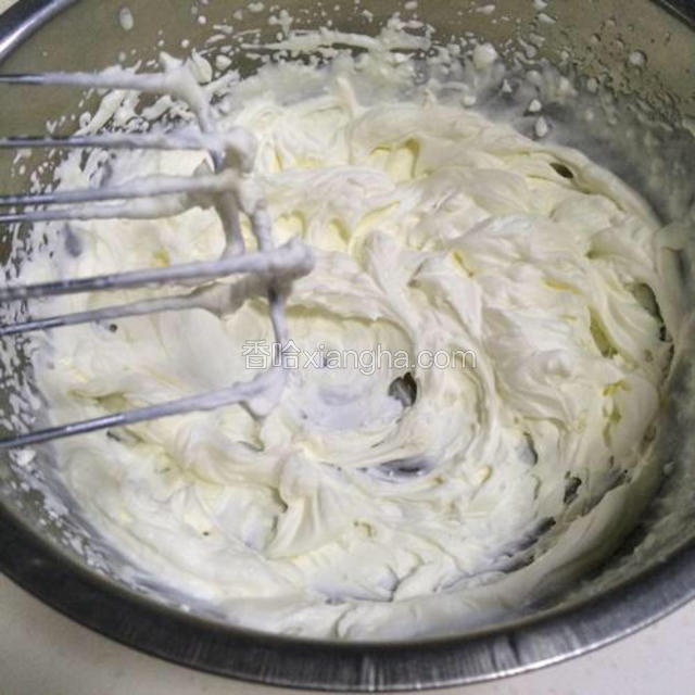 23.用电动打蛋器打发淡奶油,打到奶油有阻力并且出现明显的羽毛状纹理;
