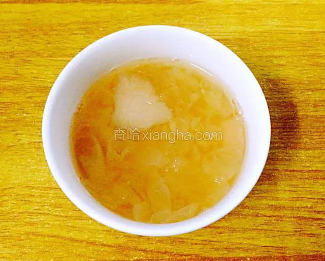3.将泡开的银耳撕成小朵,雪梨切成小块。