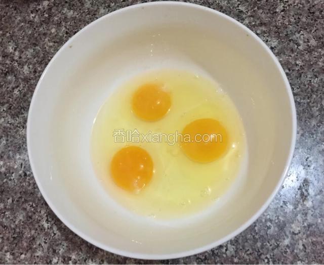 2.鸡蛋打入容器中,手动打散加入第一次砂糖。
