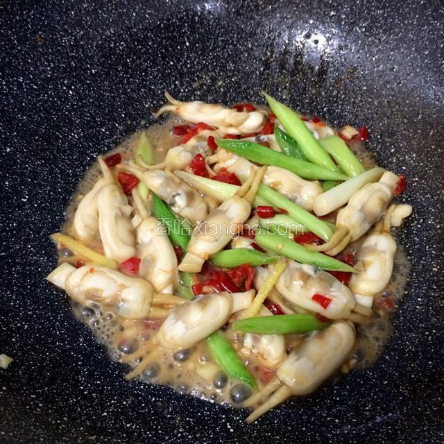2.锅内烧开水,放入蛏子至蛏子半张开壳迅速捞出控水。