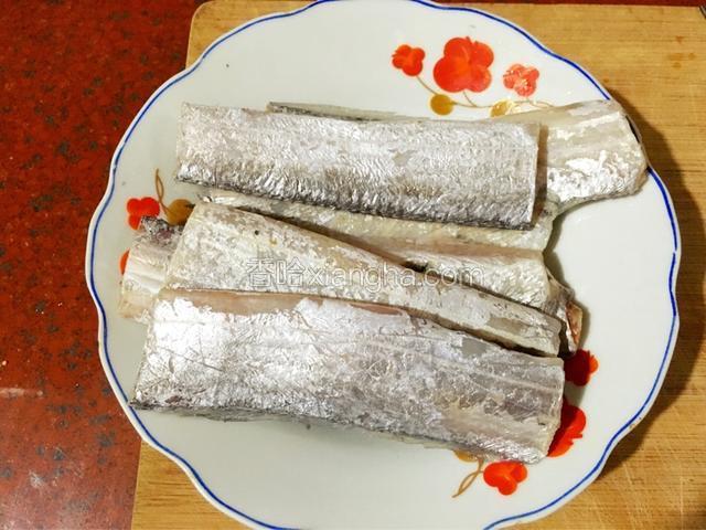 1.带鱼去除内脏洗净,用厨房纸巾拭干表面水分