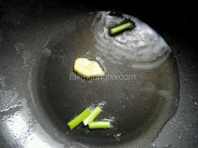 4.热锅加少许的油,放葱花和生姜炒出香味。