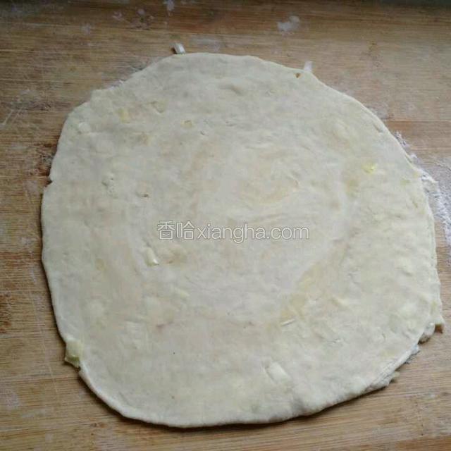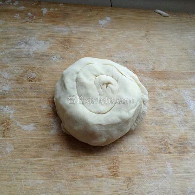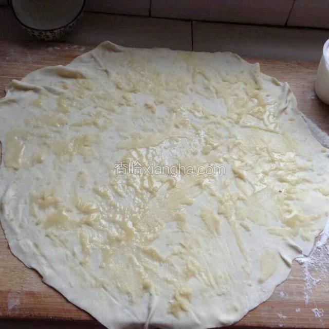 6.倒入油酥面粉内,搅拌成能滴落状的油酥