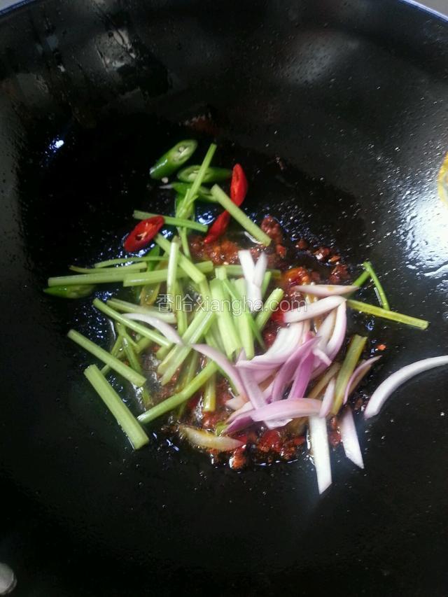 3.下豆瓣酱和麻辣香锅料继续爆香