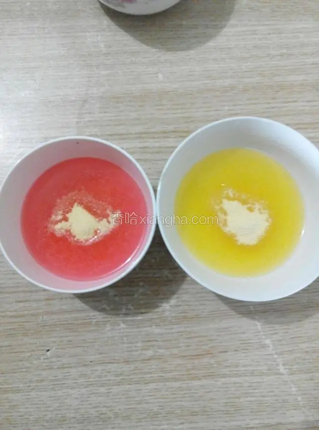2.准备两个碗里面分别倒入纯净水,分别放入QQ糖,每袋是23克,各两袋