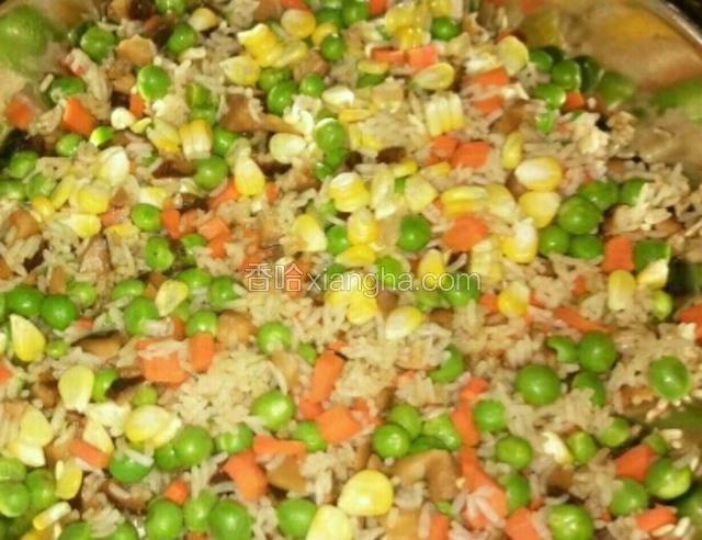 5.再放玉米粒,搅拌匀调味,放锅里蒸一个小时左右