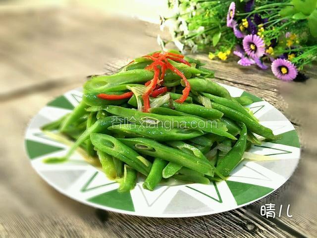 2.豆角切丝,红椒切丝,葱白切丝,大蒜切沫。