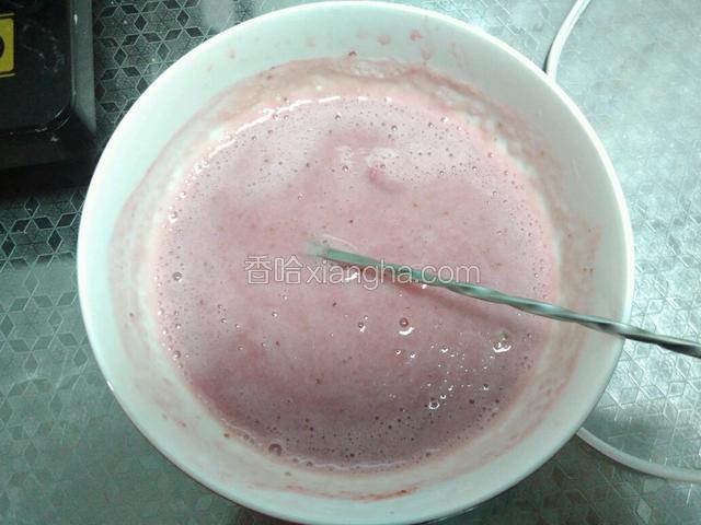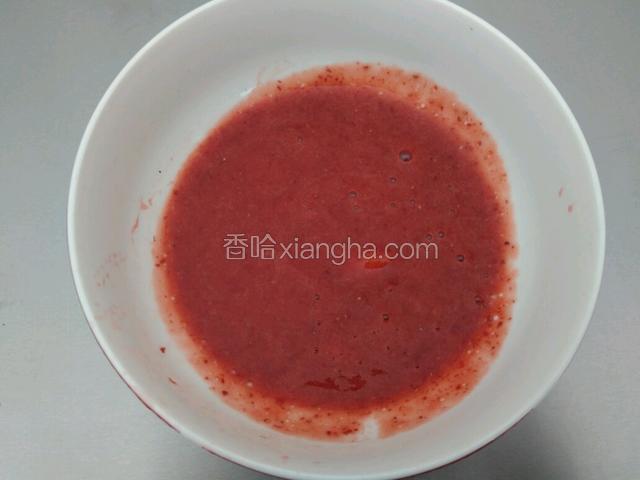 1.将100克草莓洗净空干水分去蒂切块放入料理机内打成浆