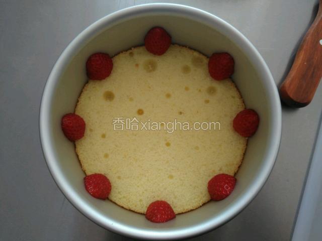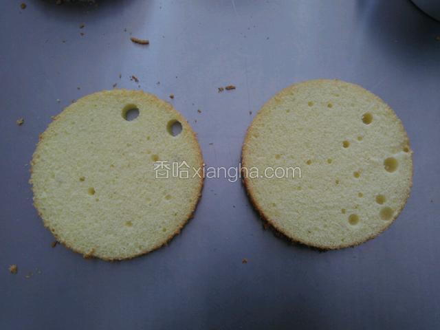 4.将戚风蛋糕胚片成厚度约1厘米的蛋糕片,2片