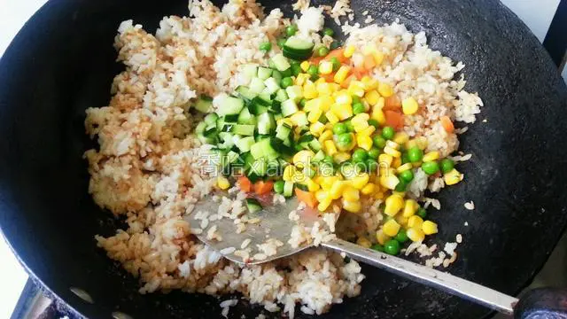 6.玉米青豆洗净,胡萝卜洗净切小粒,黄瓜洗净切小粒