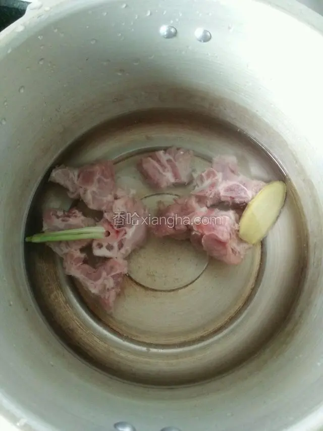 1.排骨洗干净冷水下锅放姜葱料酒悼一下,把排骨冲洗干净