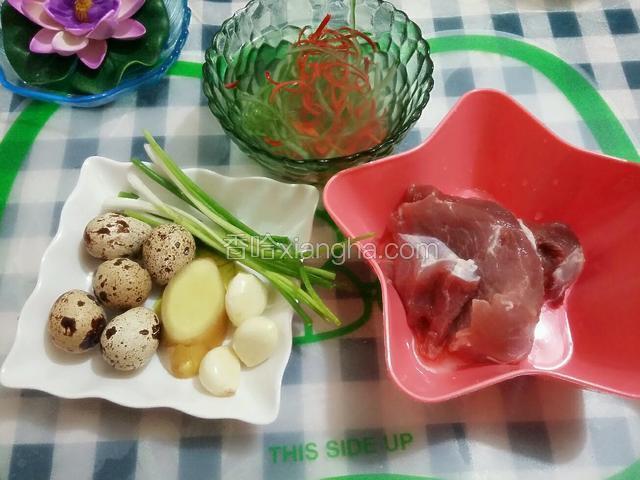 3.准备一些配料,小红尖椒大葱切细丝泡在水中,这样可以卷起来,摆盘装饰好看;