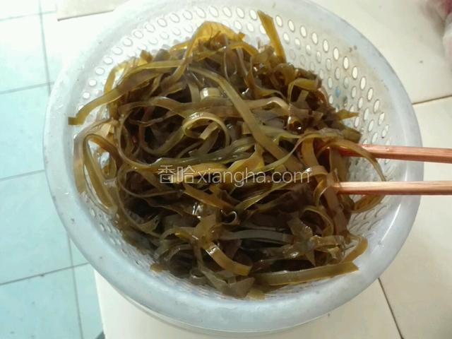 1.干海带泡发,洗干净。