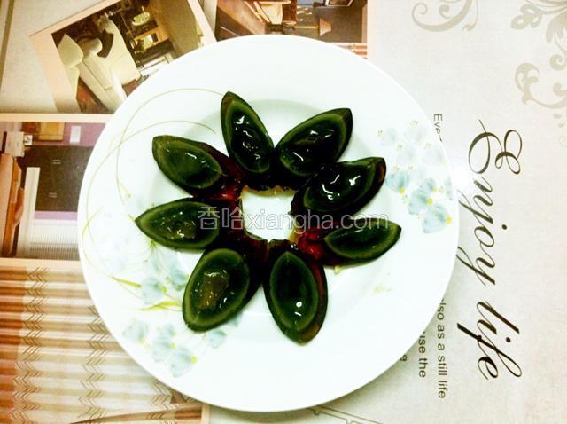 3.如图:将两个皮蛋去壳,一个皮蛋切成四等份
