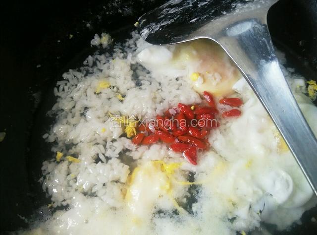 5.煮至冰糖溶化,放入枸杞,岀锅