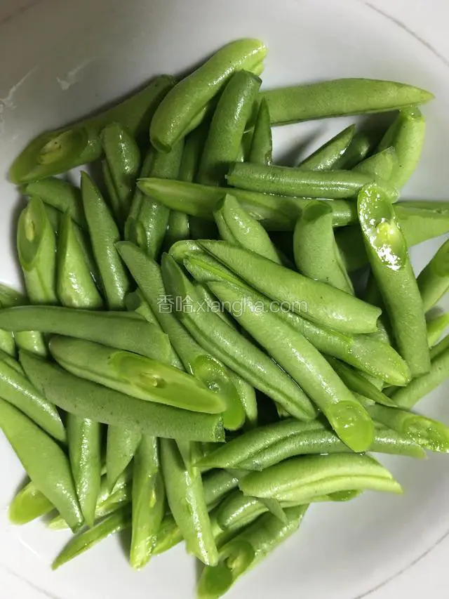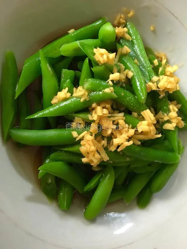 6.豆角装入盘中,将姜汁浇在豆角上即可;
