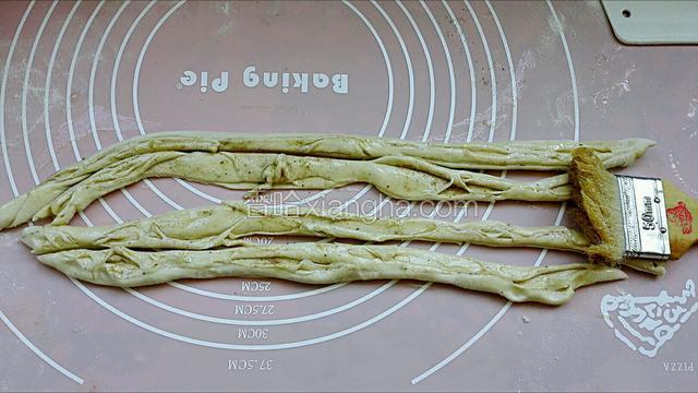 5.在竖着切开成四条面挤,抹上少许油防粘连